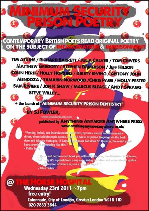 Minimum Security Prison Poetry 30/10/201126/10/2011 ~ theotherroom Share this: Click to share on Facebook (Opens in new window) Facebook Click to share on X (Opens in new window) X Like Loading... Related