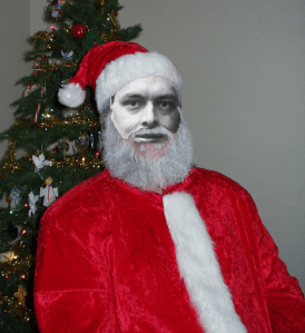 Every day in December up to and including Christmas Eve, the Other Room is posting a picture of a poet cunningly disguised as Santa Claus. If you can guess who it is and want to demonstrate your expertise to an admiring public, you can leave a comment to this post or email us at otherroomeditors@googlemail.com We will list all correct guesses on the following day and also reveal the identity of the festive poet in question. Yesterday’s Santa was Edith Sitwell. But who is this? Santa often spends Christmas with flamboyant TV host Graham Norton and Graham is in charge of the Christmas dinner. One year, Graham overcooked the turkey. That’s Burnt, Norton!” Santa exclaimed.