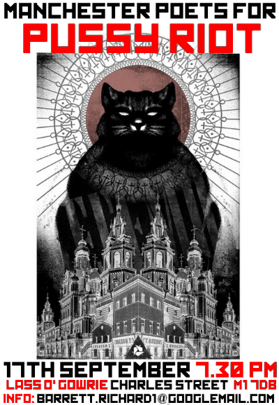 Manchester poets for Pussy Riot 06/09/201203/09/2012 ~ theotherroom Share this: Click to share on Facebook (Opens in new window) Facebook Click to share on X (Opens in new window) X Like Loading... Related