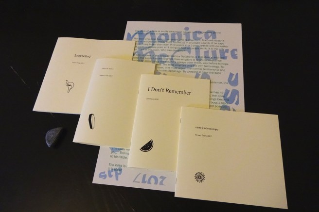 For two years we have been reading The Preparation of the Novel by Roland Barthes, the collection of the series of lectures he gave at the Collège de France between 1978 and 1980, completed shortly before his death in 1981. He declared his intention to write a novel, and in this pedagogical experiment, explores the trial of novel writing. This year we are reading his lectures on his favourite literary form, the haiku, a poem of seventeen syllables in three lines of five, seven, five, usually containing a seasonal reference. He confronts the problem of how to pass from Notation (of the Present), ‘a short fragmented form’, to the Novel, ‘a long continuous form’. For Barthes, the haiku is an ‘exemplary form of the Notation of the Present’, ‘a minimal act of enunciation’ that ‘notes […] a tiny element of “real”, present, concomitant life’.Our haikus are Barthes’s haikus, or rather, our haikus are constructed only of his words, extracted from the chapter entitled ‘The Desire for Haiku’, one from (or even for) each page. It is an experiment in writing, if not a search for a form (for thatis given), drawn from our more or less monthly meetings during the academic year around a table to talk about writing, the trial of writing, one that may show the rhythm of our reading.
