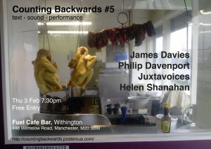Reviews and audio for Counting Backwards 5: Phil Davenport, James Davies, Helen Shanahan and Juxtavoices available here