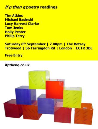 if p then q readingsTim Atkins, Michael Basinski, Lucy Harvest Clarke, Tom Jenks, Holly Pester, Philip Terry