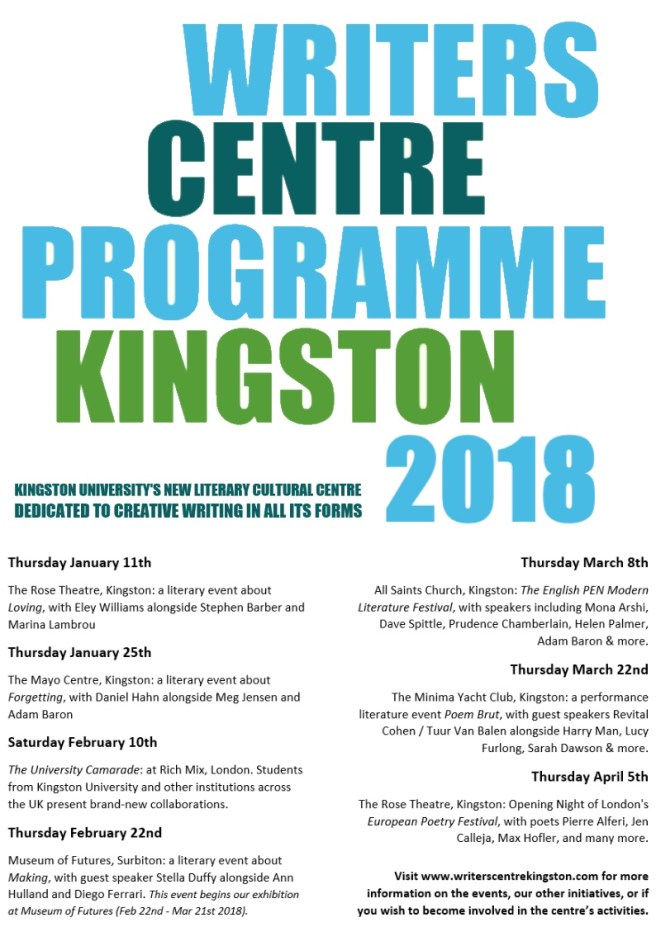 April Thursday 5th : European Poetry at Writers’ Centre Kingston : Rose Theatre