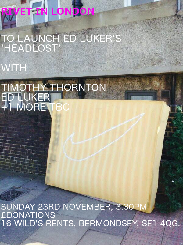 Timothy Thornton and Verity Spott wrote ‘Poems’ together, which is published by the beautiful Face Press, and which will be read in its entirety on the night, and available to buy, eat, etc.